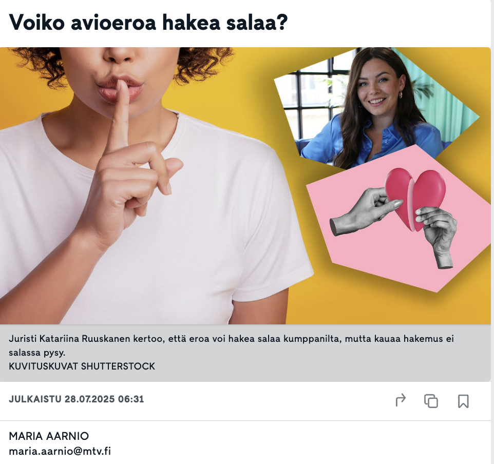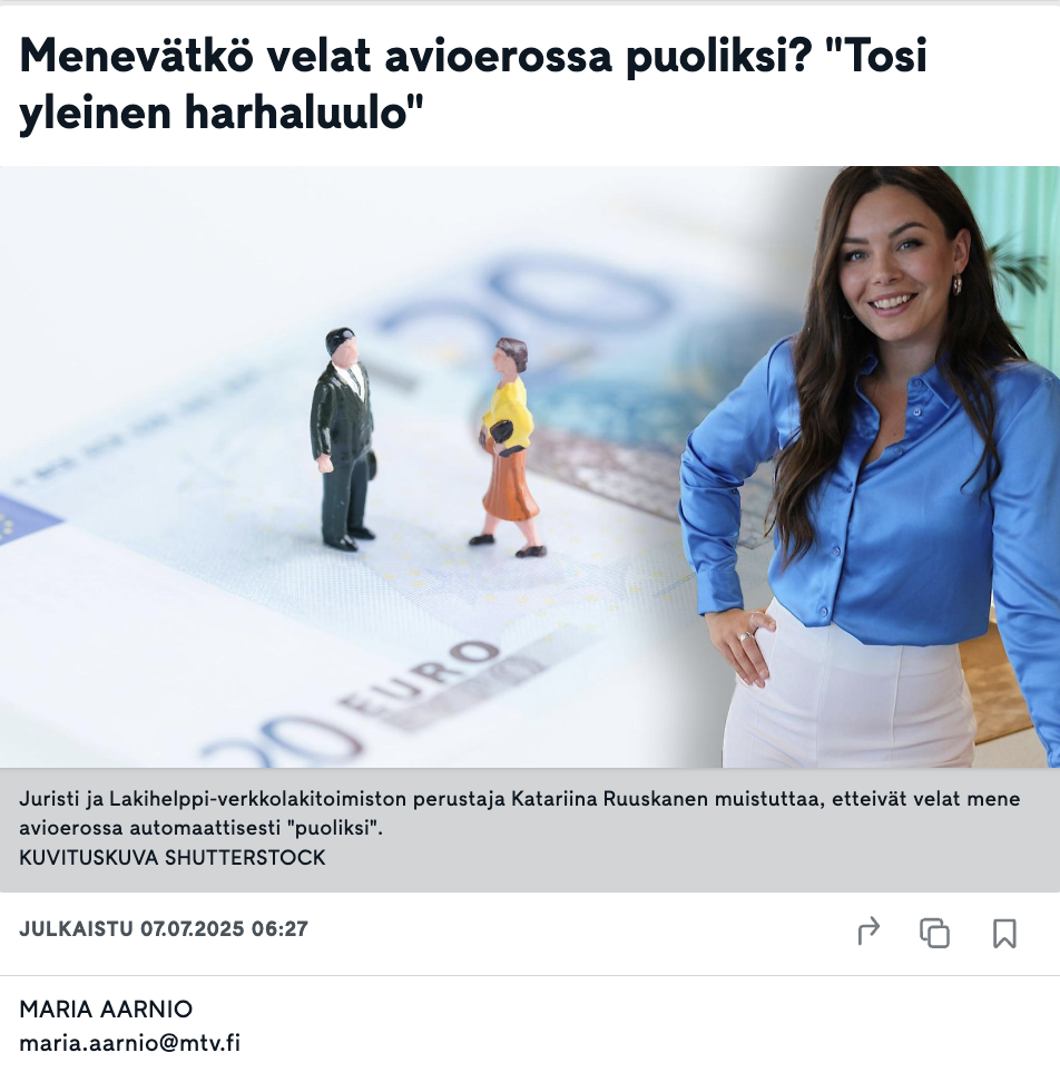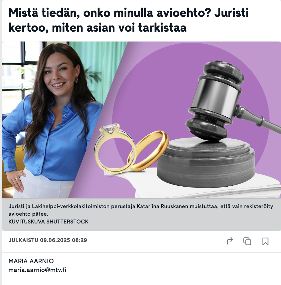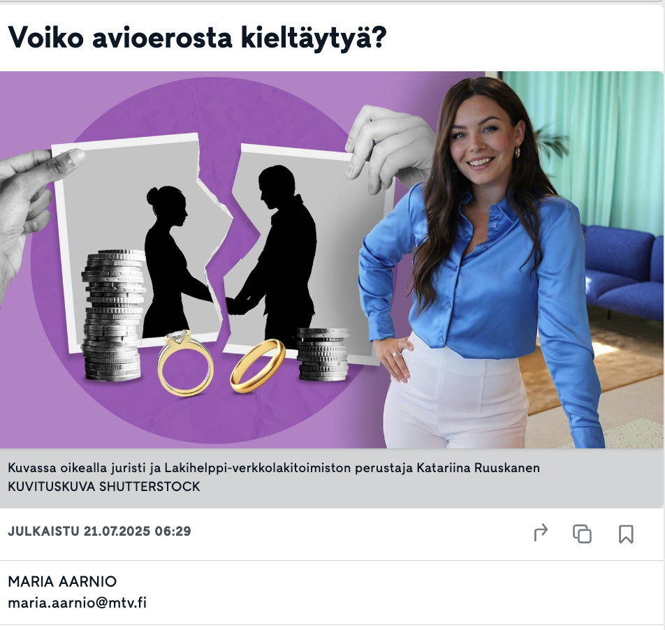 Lakihelpin Katariina Ruuskasen MTV Uutiset haastattelu